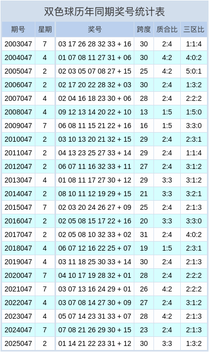 双色球历史同期奖号统计图